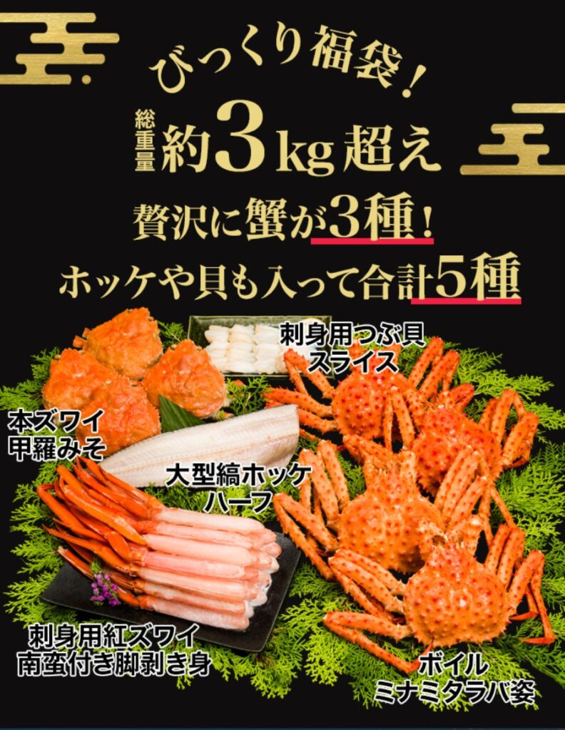 ホッケや貝も入って合計5品で約25,000円相当がお買い得価格の10,000円!